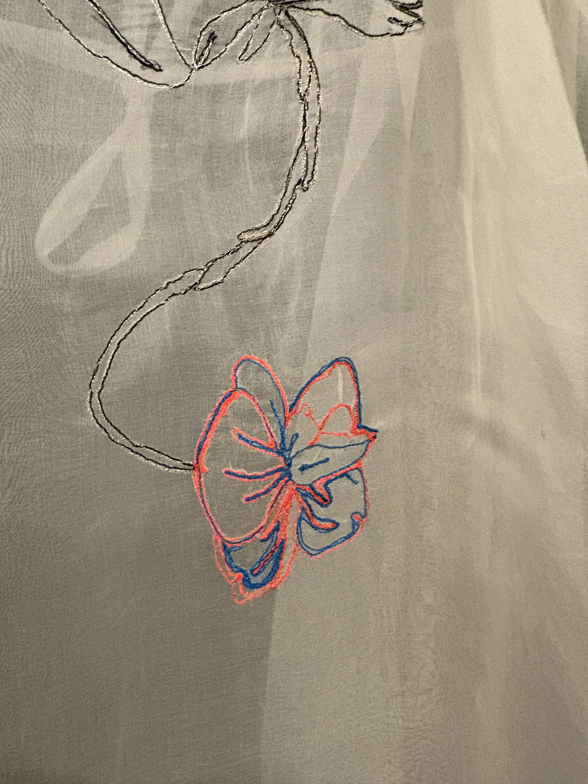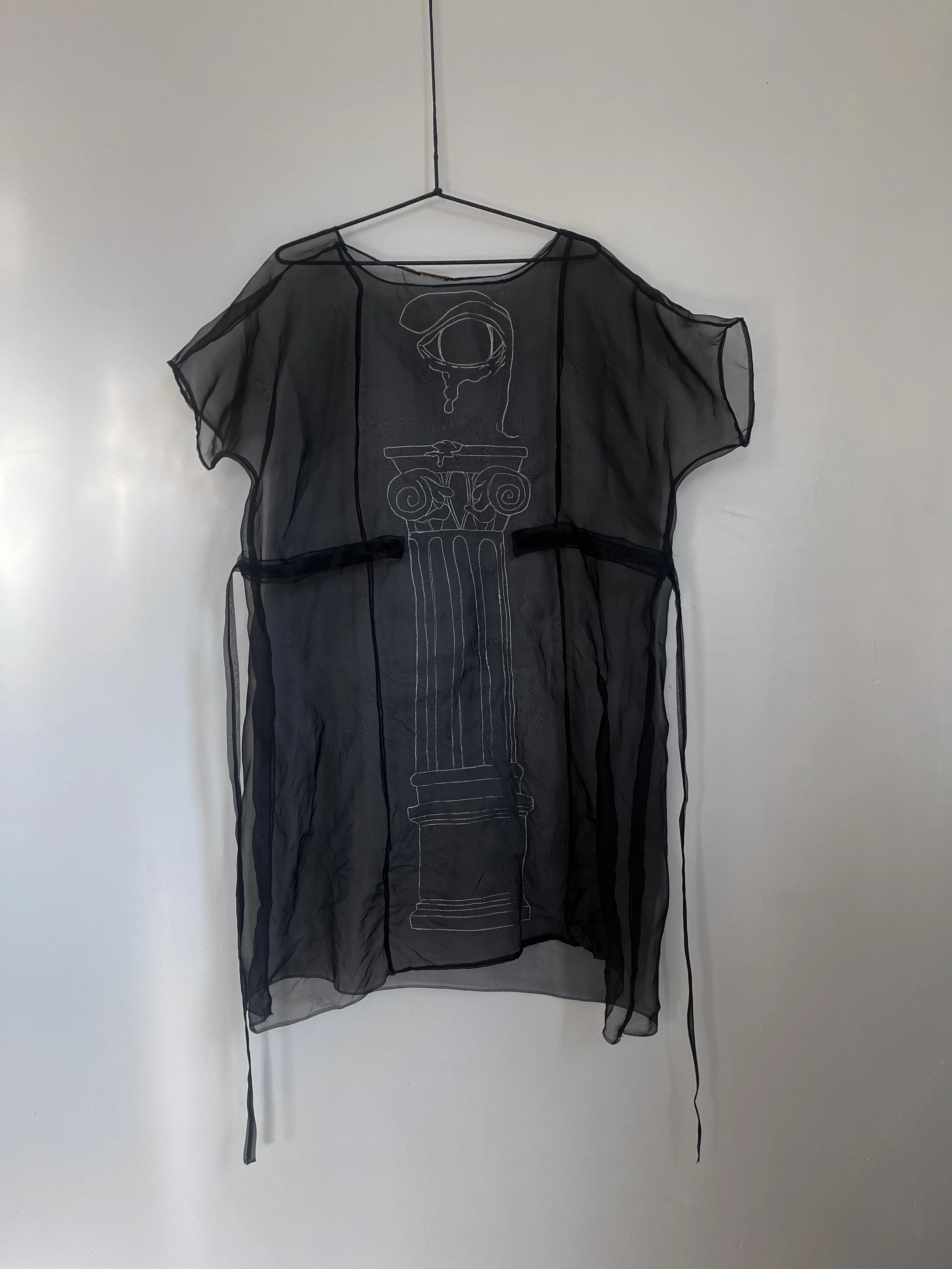 Made from eco-friendly dead-stock polyester poplin, this lightweight top embodies modern fashion with a timeless feel. It has a relaxed fit for comfort and two practical pockets, a kick slit in the back, and accented with unique embroidered edges for artistic appeal. Each top is one-of-a-kind and handcrafted, showcasing outstanding craftsmanship.